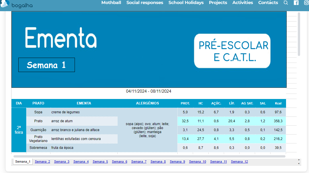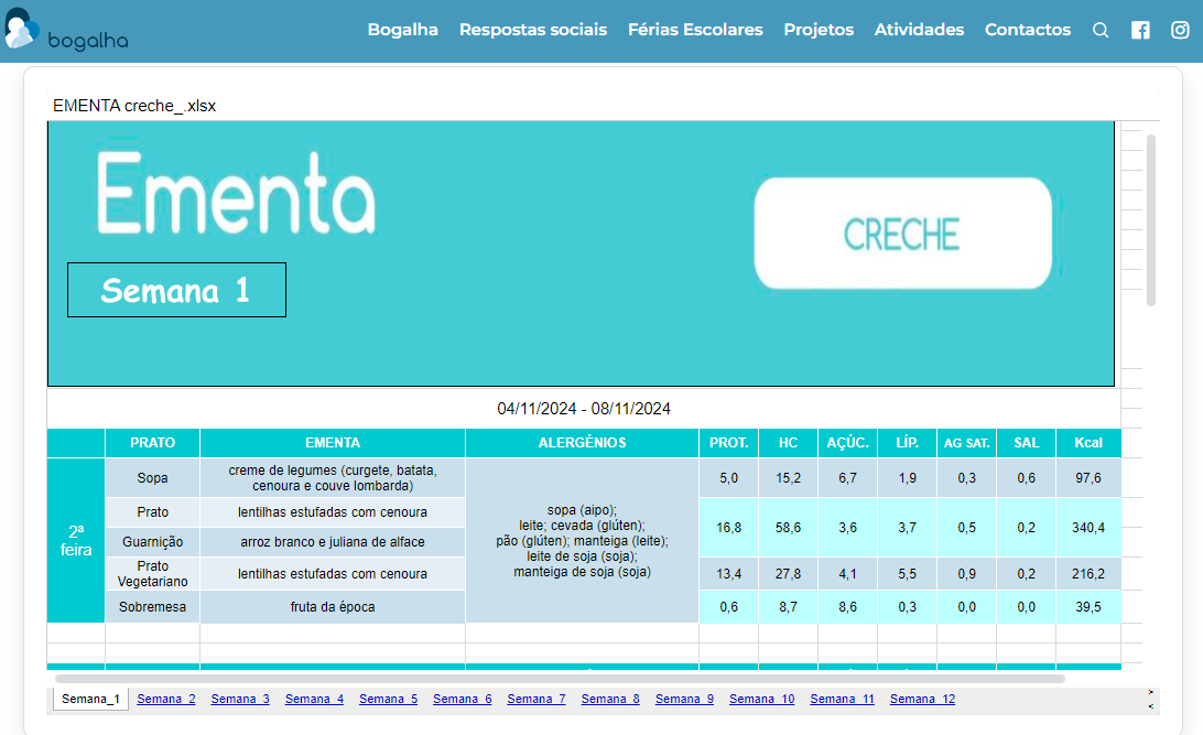 Address: Rua Alvaro Doria 33, 4710-350 BragaRedesigning the menu(Daycare) page by replacing images with an Excel table synchronized with the company's Google Drive.